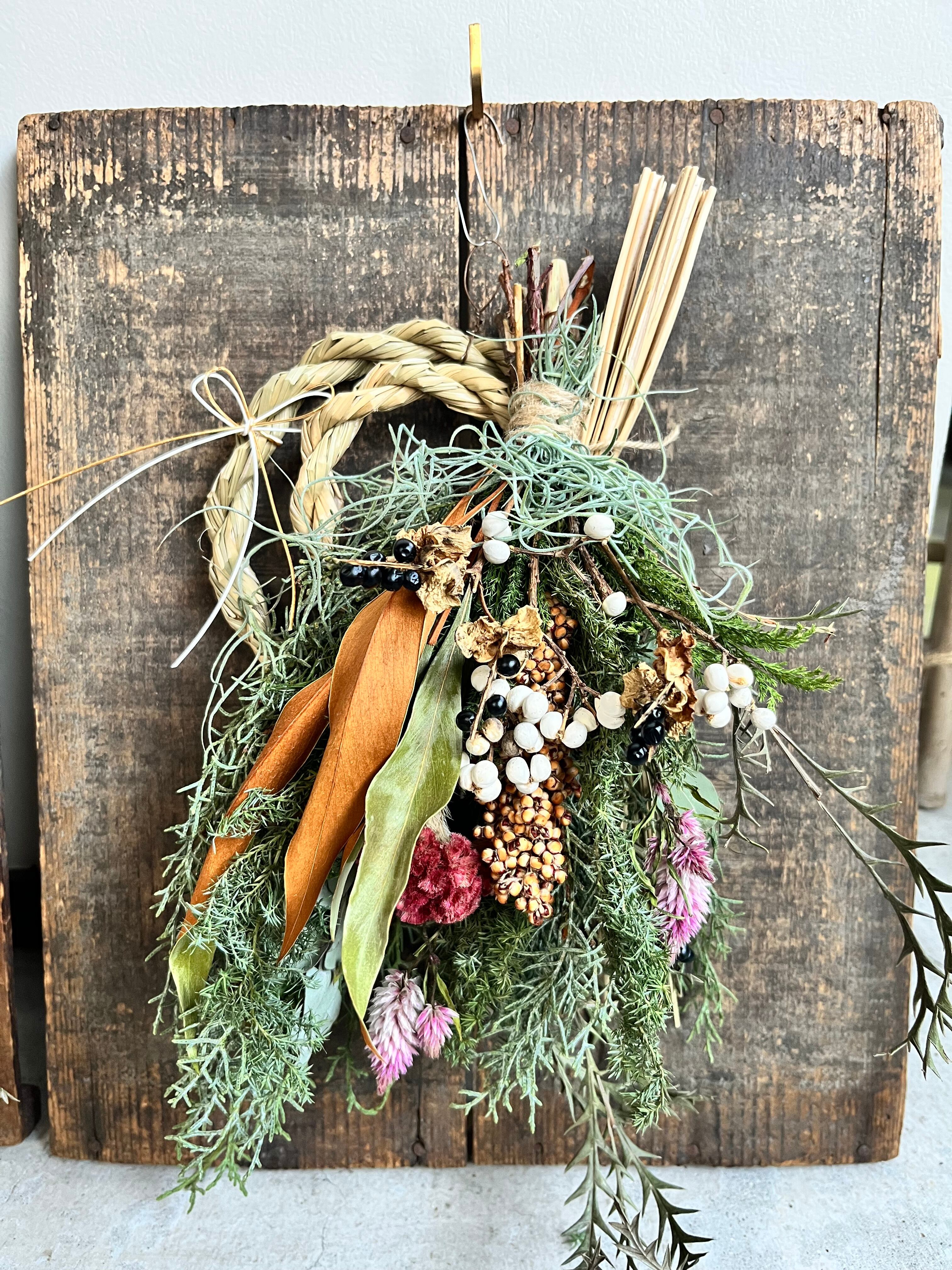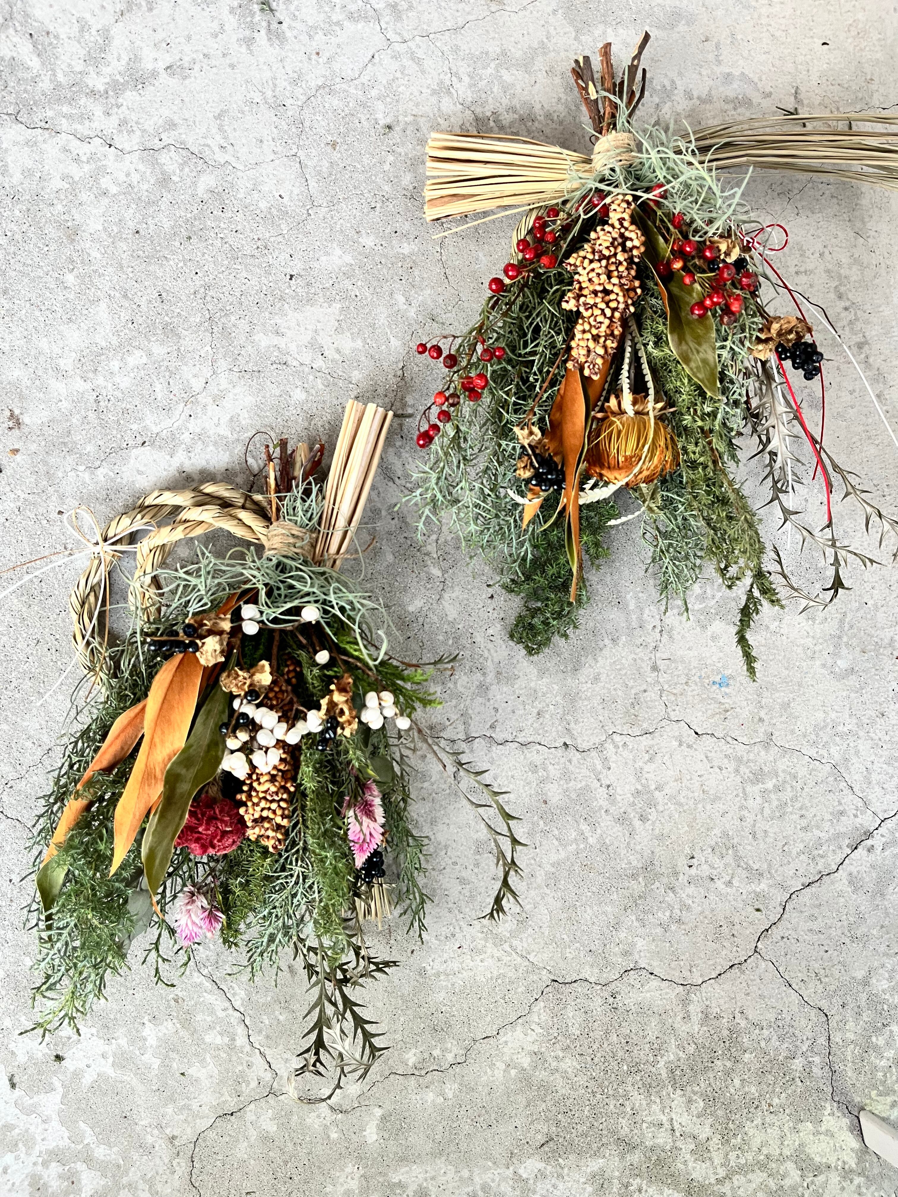 【クリスマスリース】と【しめ縄スワッグ】を作ります。