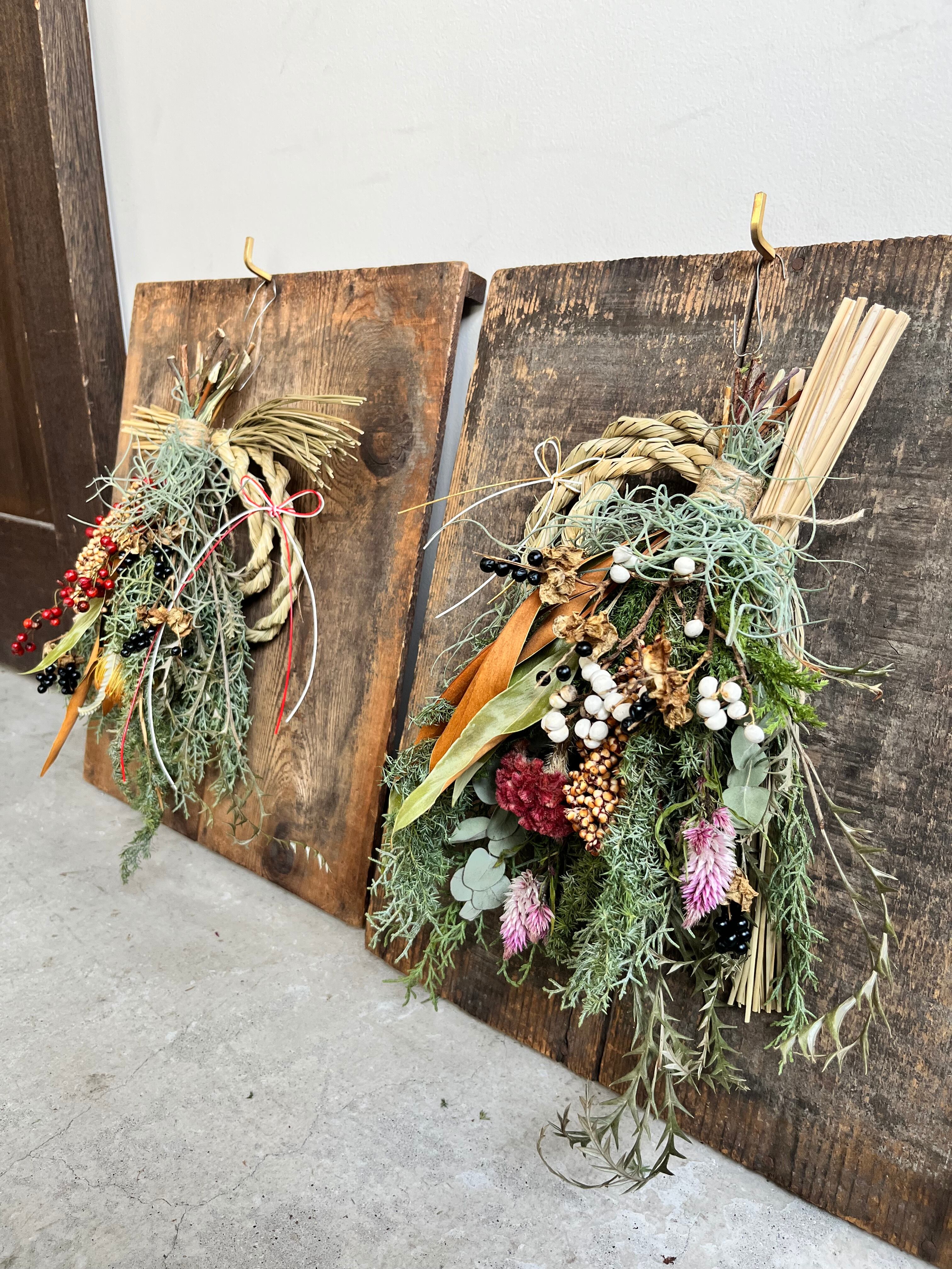 【クリスマスリース】と【しめ縄スワッグ】を作ります。